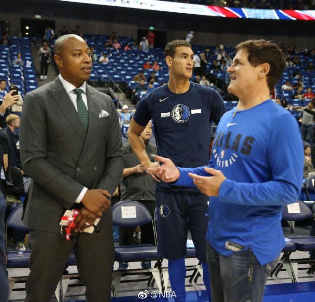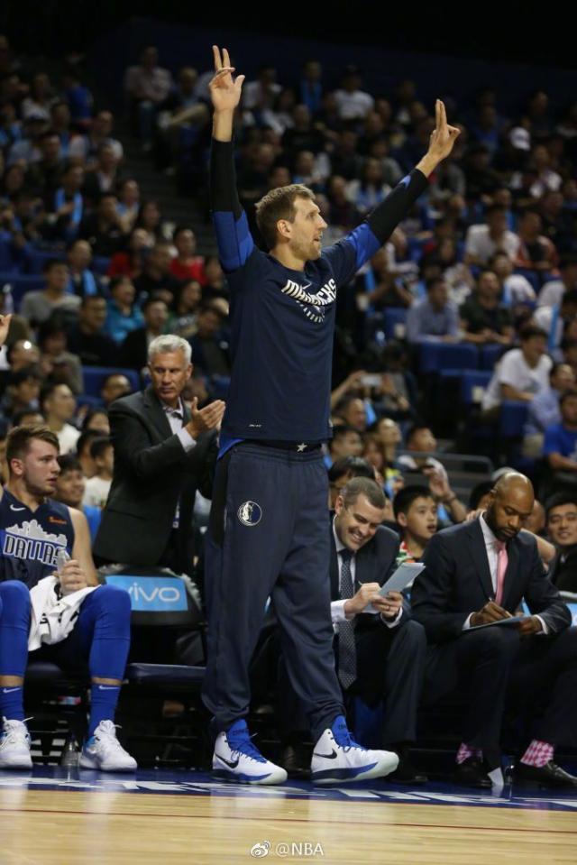 昨晚的NBA中国赛间隙,曾经效力独行侠的王治郅为前队友诺维茨基送上了一把吉他,二人深情拥抱。德国人回到替补席还在不停摆弄吉他,看上去颇有组乐队出道的潜力。