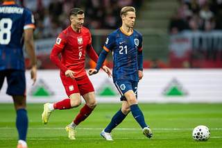 世预赛欧洲区G组第7轮,波兰主场1比1战平荷兰,在还有1轮的情况下,至少确保了小组第二打附加赛的机会。第43分钟莱万助攻卡明斯基为波兰先开纪录,第47分钟孟菲斯·德佩为荷兰扳平。荷兰末轮对立陶宛,只要拿到积分即可锁定第一直接出线。 荷兰阵容(4231):费布吕亨/海特勒伊达(74’范赫克)、于里恩·廷伯、范戴克、范德芬/格拉芬贝赫(89’斯豪滕)、弗伦基·德容/马伦、贾斯汀·克鲁伊维特(74’赖因德斯)、哈克波/孟菲斯·德佩(89’埃梅加)