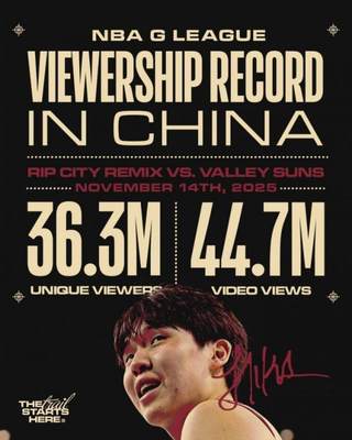 杨瀚森G联赛首秀创纪录 中国3630万观众引爆收视