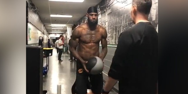 詹姆斯过道训练 半裸上身秀肌肉