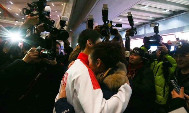 武大靖回国受热捧寸步难行 与妈妈短暂拥抱
