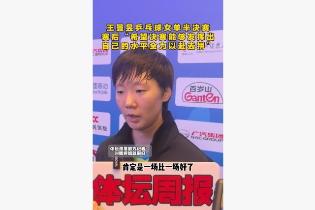 孙颖莎:希望与王曼昱的决赛不留遗憾