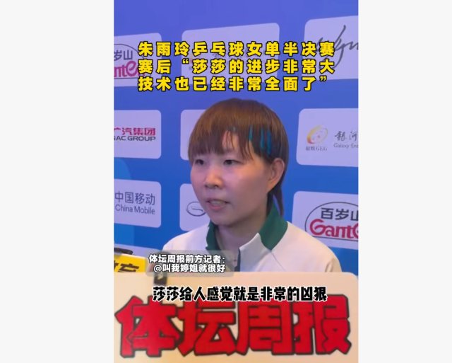 朱雨玲:孙颖莎进步非常大 技术也已经非常全面了