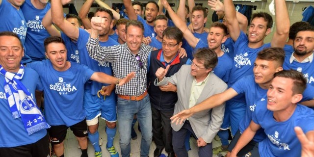 现场:洛尔卡欢庆升级 球迷挂横幅“徐根宝威武”