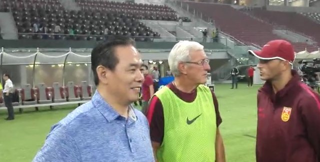 国足做赛前训练 蔡振华现身体育场与里皮交流 !
