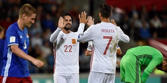 集锦:莫拉塔2球 伊斯科2场3球 西班牙8-0屠弱旅
