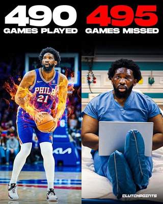 恩比德至少缺席首轮初期比赛!他生涯已缺阵495场