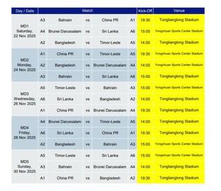 U17亚预赛赛程公布 中国队11月22日19:35迎战巴林