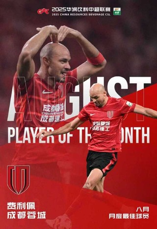 中超联赛官方公布了8月最佳球员,来自成都蓉城的费利佩当选。
