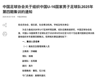 2025年9月30日至10月17日U16男足组织本年度第四期集训。