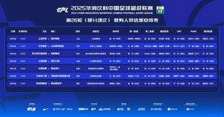 中超联赛官方公布了第26轮比赛的裁判安排。