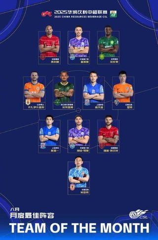 中超官方公布了8月最佳阵容出炉,本次最佳阵容采用3-4-3阵型。