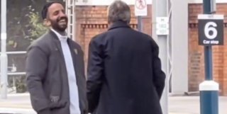 阿莫林在等去伦敦的火车时,和曼联足球总监杰森·威尔科克斯有说有笑