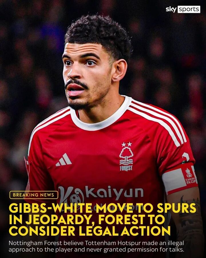 7月11日讯 据天空体育记者Rob Dorsett独家报道,森林认为热刺非法接触怀特,暂时搁置了怀特转会热刺的交易。消息称,诺丁汉森林暂时搁置了吉布斯·怀特转会热刺的交易,他们已经就潜在的法律诉讼联系了他们的律师。天空体育称,森林已经停止了与热刺的所有沟通。诺丁汉森林认为热刺非法接触球员,森林从未允许他们与怀特接触。森林认为,吉布斯·怀特的解约条款存在保密规定,而热刺的出价正是解约金的价格。目前尚不清楚森林是否能完全阻止此次转会,但是,由于森林准备向英超联赛提出申诉,预计转会将被推迟。