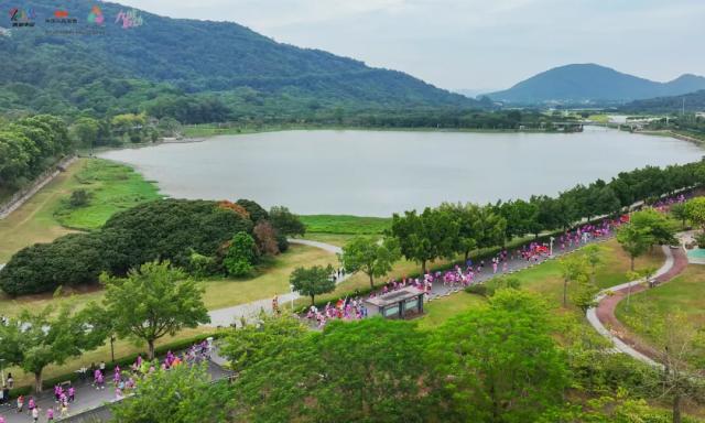 本次赛事设置8.5公里与4.3公里两个组别。上午9时,汽笛声响彻风云岭上空,近千名跑者从湿地公园出发,途经艾米小镇、三将军村及环湖路,在秋意浓浓的风光中挥洒汗水,汇成一道流动的多彩风景。风云岭主峰约200米高,曾被列为从化八景之一“风门仙迹”,园内松林与针阔混交林相映,形成广州重要的生态屏障,是市民喜爱的运动胜地。沿途市民自发动员,呐喊助威声与鸟鸣、桂花香交织,奏响全民迎全运的激情乐章。