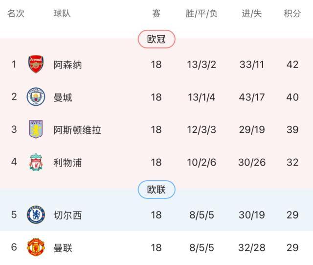 英超第18轮,切尔西主场1-2遭阿斯顿维拉逆转。维拉取得各项赛事11连胜、英超8连胜,本赛季他们在比分落后的情况下取得18个积分,英超各队最多。本轮英超排名前三的球队均已2-1的比分获胜,维拉仅落后榜首阿森纳3分,切尔西则被利物浦反超,排名降到第5,仅以净胜球领先曼联。