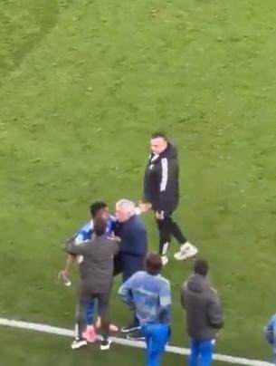 巴西前锋坐到替补席,拒绝继续上场比赛。在坐到替补席之前,维尼修斯还跟穆里尼奥解释詹卢卡·普雷斯蒂安尼对他骂了什么。皇马球员还跟本菲卡教练组成员发生冲突,本菲卡教练组一名成员被红牌罚下。比赛停顿了将近十分钟,期间,穆里尼奥和阿韦洛亚一对前师徒还发生争吵,穆里尼奥试图劝说维尼修斯回到场上重新比赛。