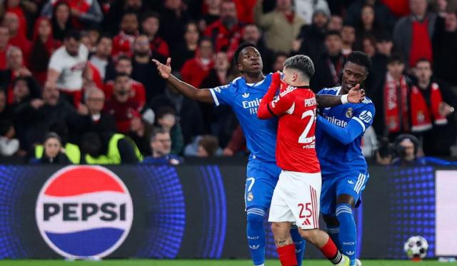 与1月28日那场比赛不同,附加赛首回合这场比赛开场后,两队都打得比较谨慎小心。双方球员对抗强度很高,但无论是本菲卡,还是皇马,一旦本方在前场丢球后都马上回防以保护本方禁区。上半场,皇马机会更多。维尼修斯有一次射偏,比赛最后几分钟,姆巴佩浪费了两次不错的机会。