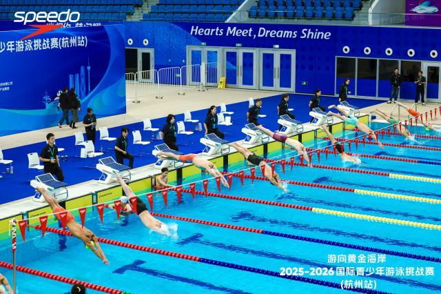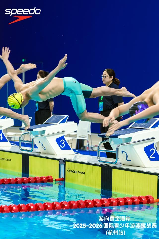 为推动中澳青少年文化体育交流,搭建国际青少年游泳竞技平台,由杭州市游泳协会、以诚卓荦纽扣校园文化服务有限公司主办,杭州萧山亚运场馆投资建设有限公司、海力体育产业集团承办,杭州极速力量体育文化发展有限责任公司协办,黄金海岸旅游及文体局(Experience Gold Coast)和速比涛(Speedo)联合呈现的“游向黄金海岸·2025-2026国际青少年游泳挑战赛”(杭州站)于3月8日在杭州奥体AT中心游泳馆举行。