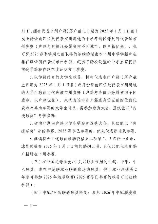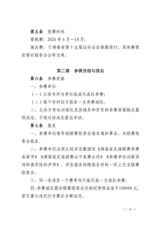 附:《2026年湖南省足球联赛规程》