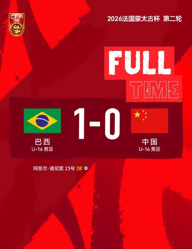 On April 2, in the second round of the 2026 Montaigu Tournament in France, China’s U16 national team lost 0–1 to Brazil U16, suffering their second consecutive defeat. In the 29th minute, Arthur Ferreira Diniz broke into the penalty area and scored the only goal of the match for Brazil.
