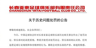 长春亚泰俱乐部发布《关于历史问题处罚的公告》