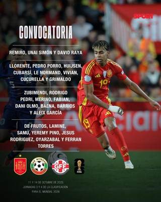 西班牙队公布10月国际比赛日新一期25人集训大名单。