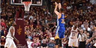 总决赛第四战,库里状态神勇,全场得到38分,命中7个三分球。