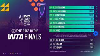 新一轮WTA年终总决赛积分榜更新 莱巴金娜居首位