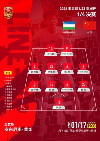 U23国足VS乌兹别克首发出炉!王钰栋先发杨希出战