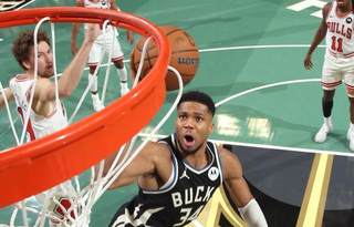 字母哥轰下41分15篮板9助攻2抢断2盖帽,单场上演8记暴扣,带队击败黑马公牛。