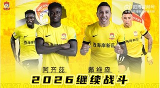 青岛西海岸官方宣布,阿齐兹完成转会加盟,与戴维森达成续约留队。