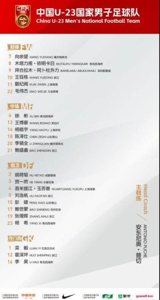 China U-23 squad for the U-23 Asian Cup (1/2)