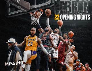 詹姆斯生涯将首次缺席常规赛揭幕战。