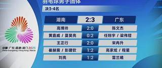 广东队获全运会男子羽毛球团体赛铜牌 湖南第四