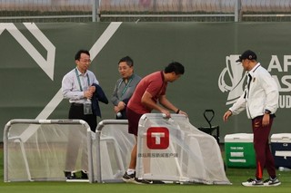 【直击】中国队出场热身!现场五星红旗飘扬