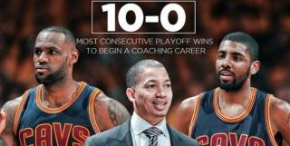 在季后赛取得10胜0负的同时,骑士场均净胜对手多达13.4分。