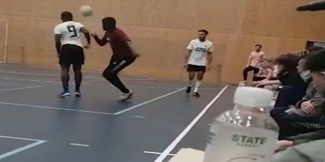 运气!不幸滑倒但是却阴差阳错贡献了个头球助攻