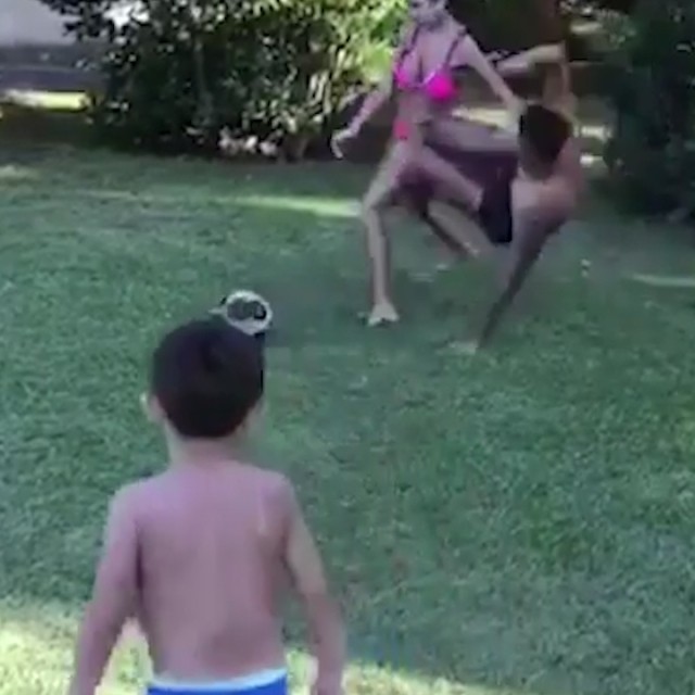 家庭娱乐怎么耍?当着孩子的面父亲飞铲妈妈