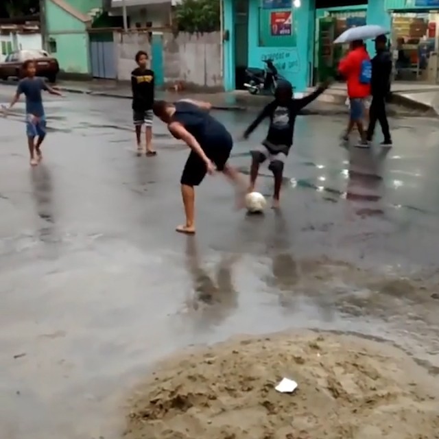 有一种足球氛围叫在街头玩足球直到老妈喊吃饭